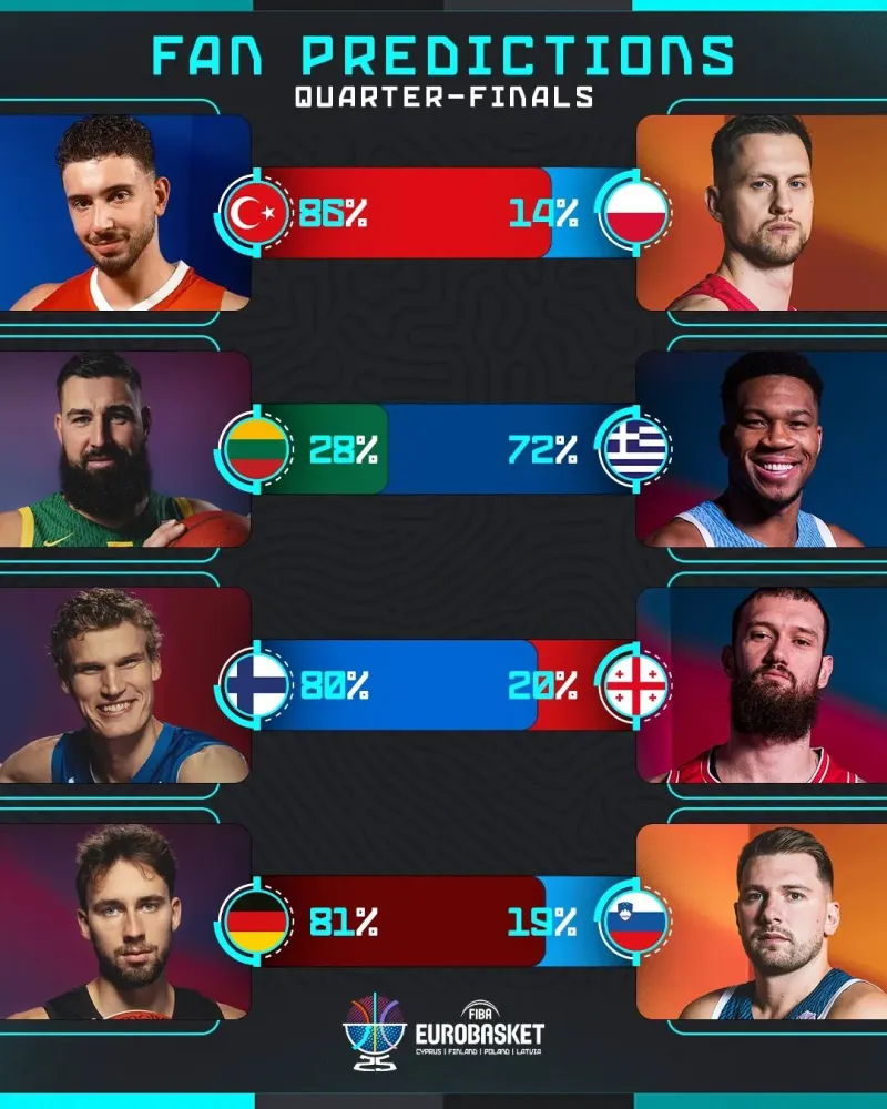 欧锦赛1/4决赛,斯洛文尼亚91-99不敌德国,无缘四强。